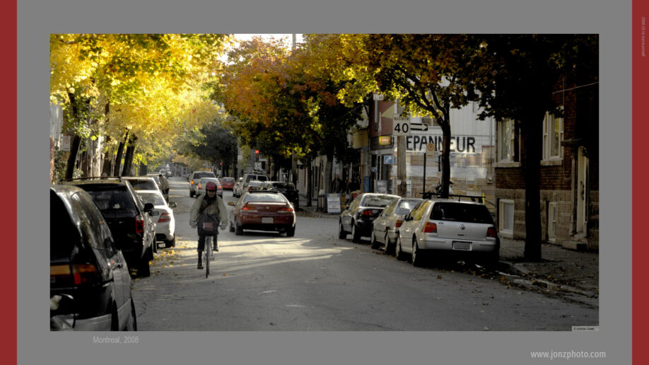 Moving to Montreal in 2003 was like stepping into a city caught between two realities. The Montreal public transit system was already one of North America’s most heavily used systems. Yet Montreal remained (and remains) a city where cars dominate the landscape. There’s a dream of urban sustainability but even in me there’s a conflict with secret Formula One fantasies.