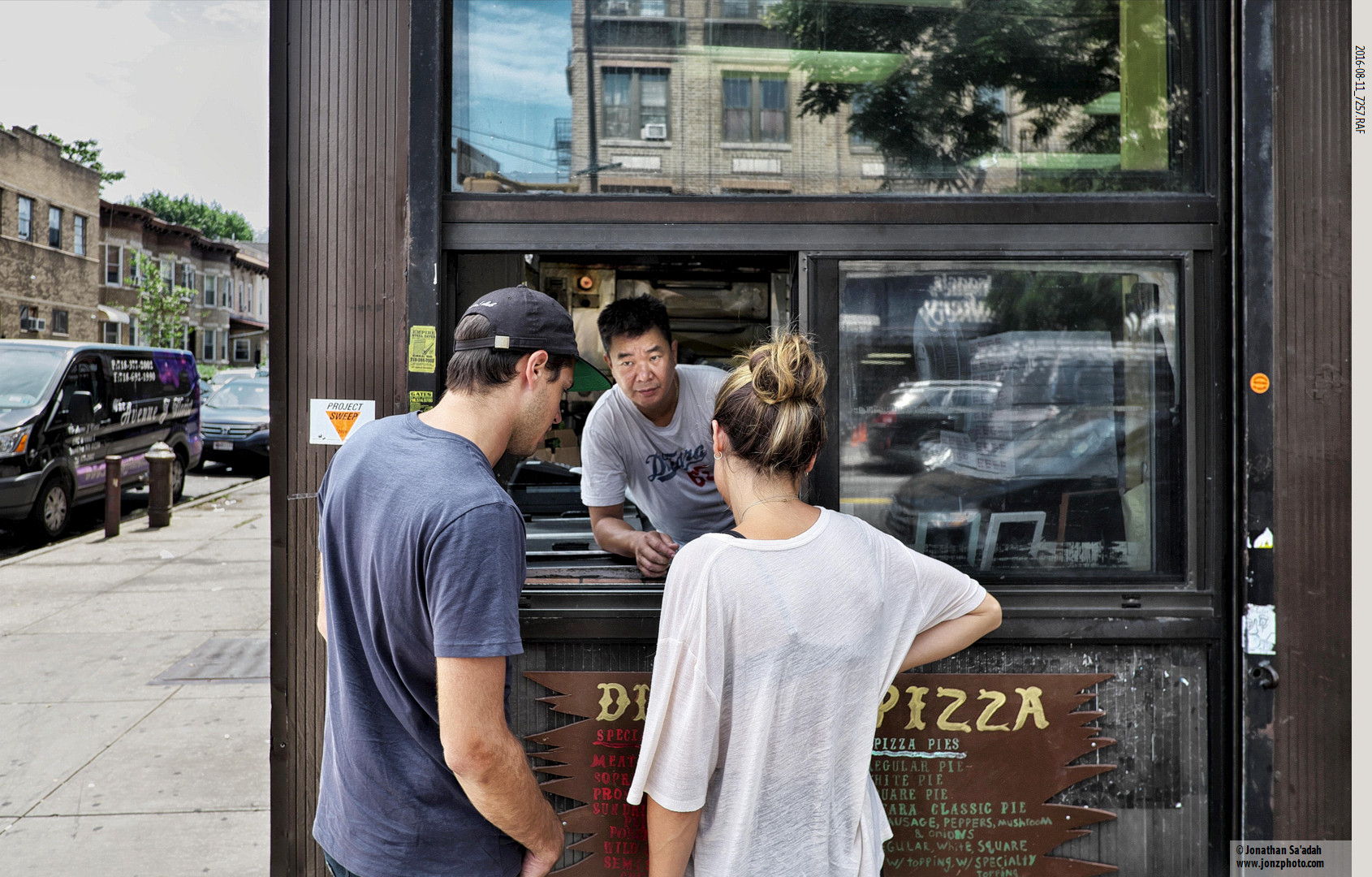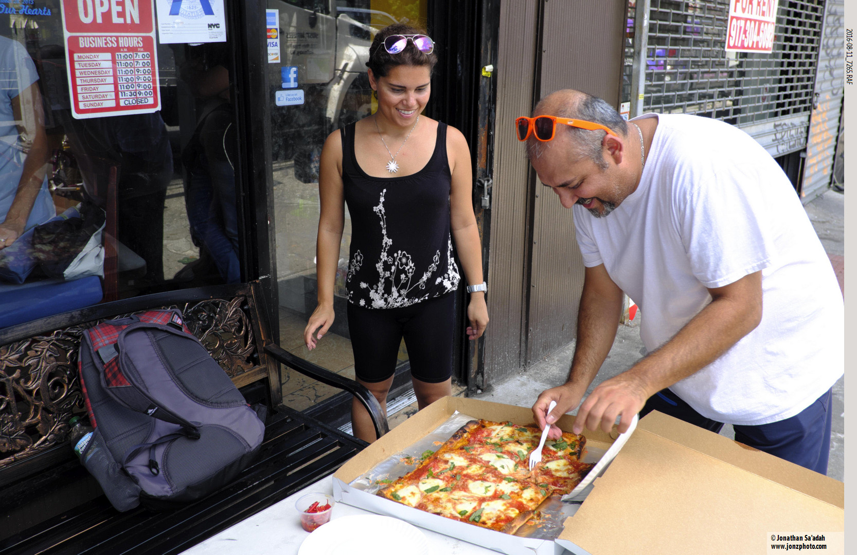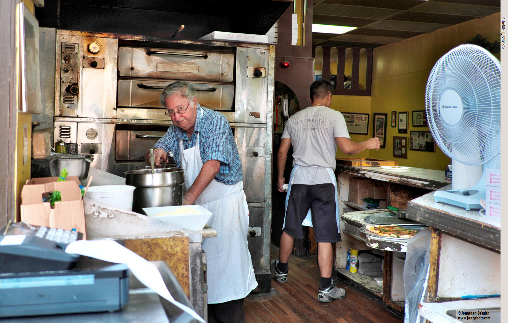 Di Fara’s never scored a lot of points for “The Restaurant Experience” There was inside “seating” but since this August day was 32c just being able to get a pizza seemed like a victory! Never one to be stopped from selling pies, DeMarco had fans set up near the ovens to cool himself, but it really wasn’t a pizza sort of day.