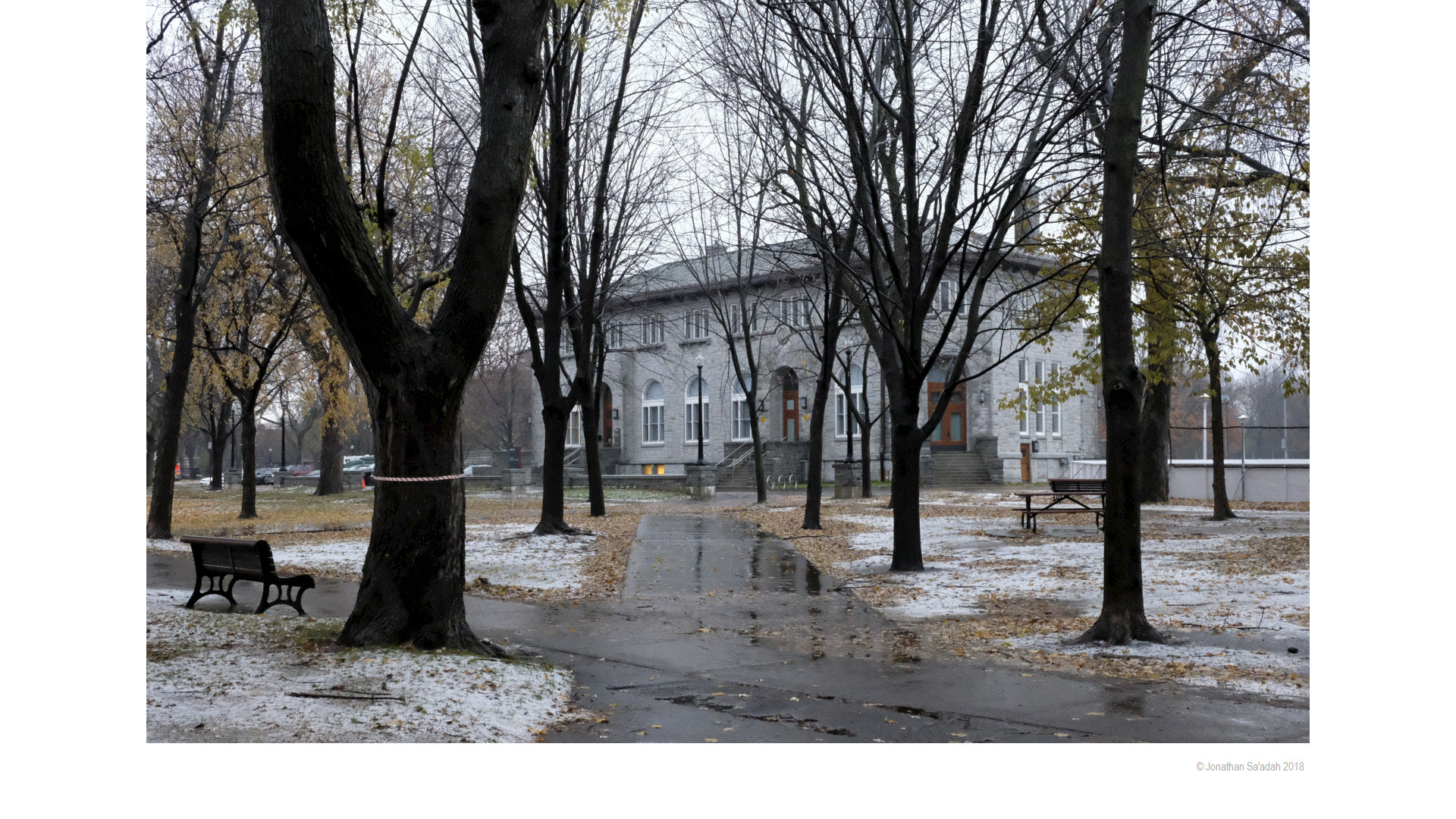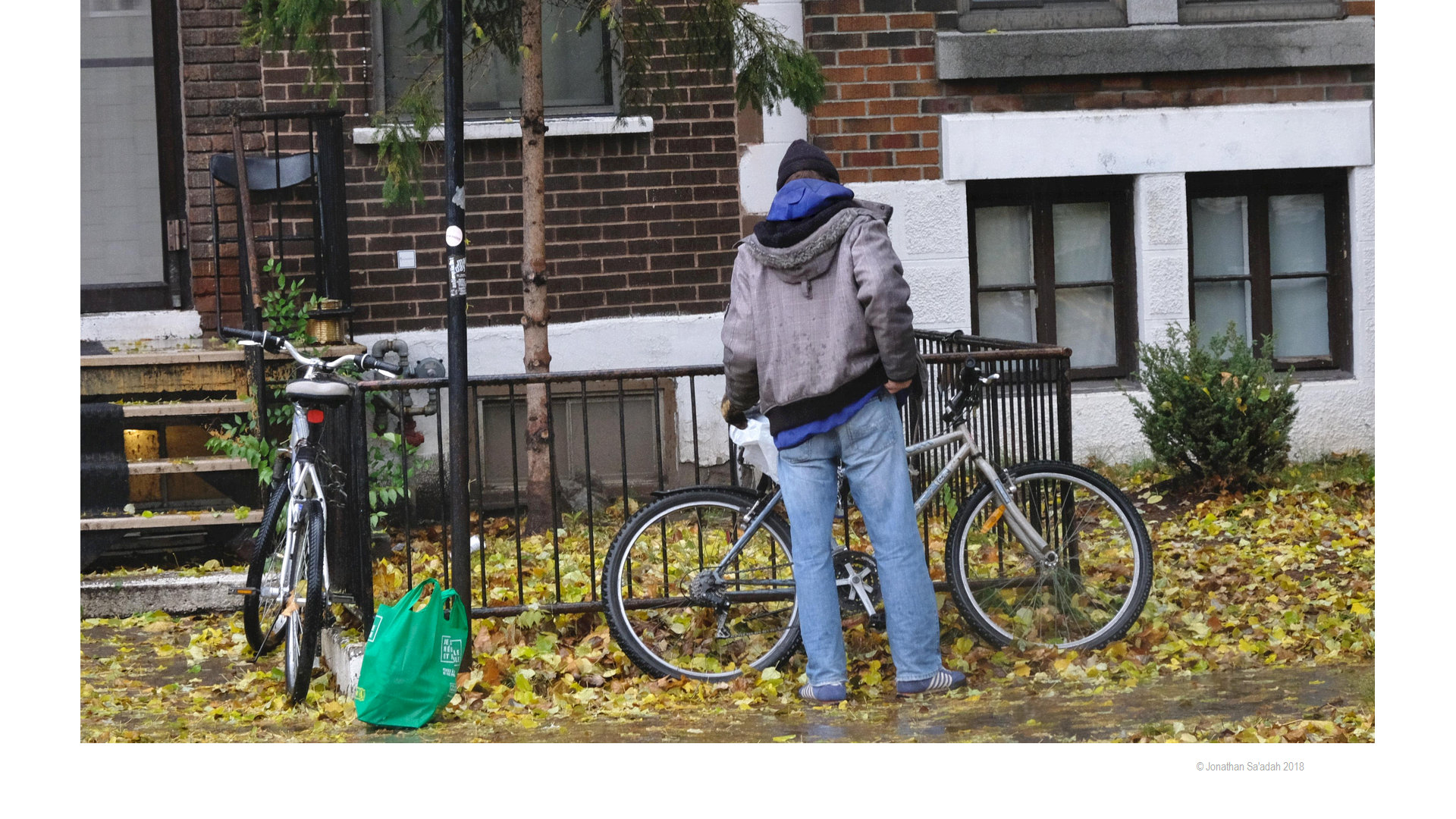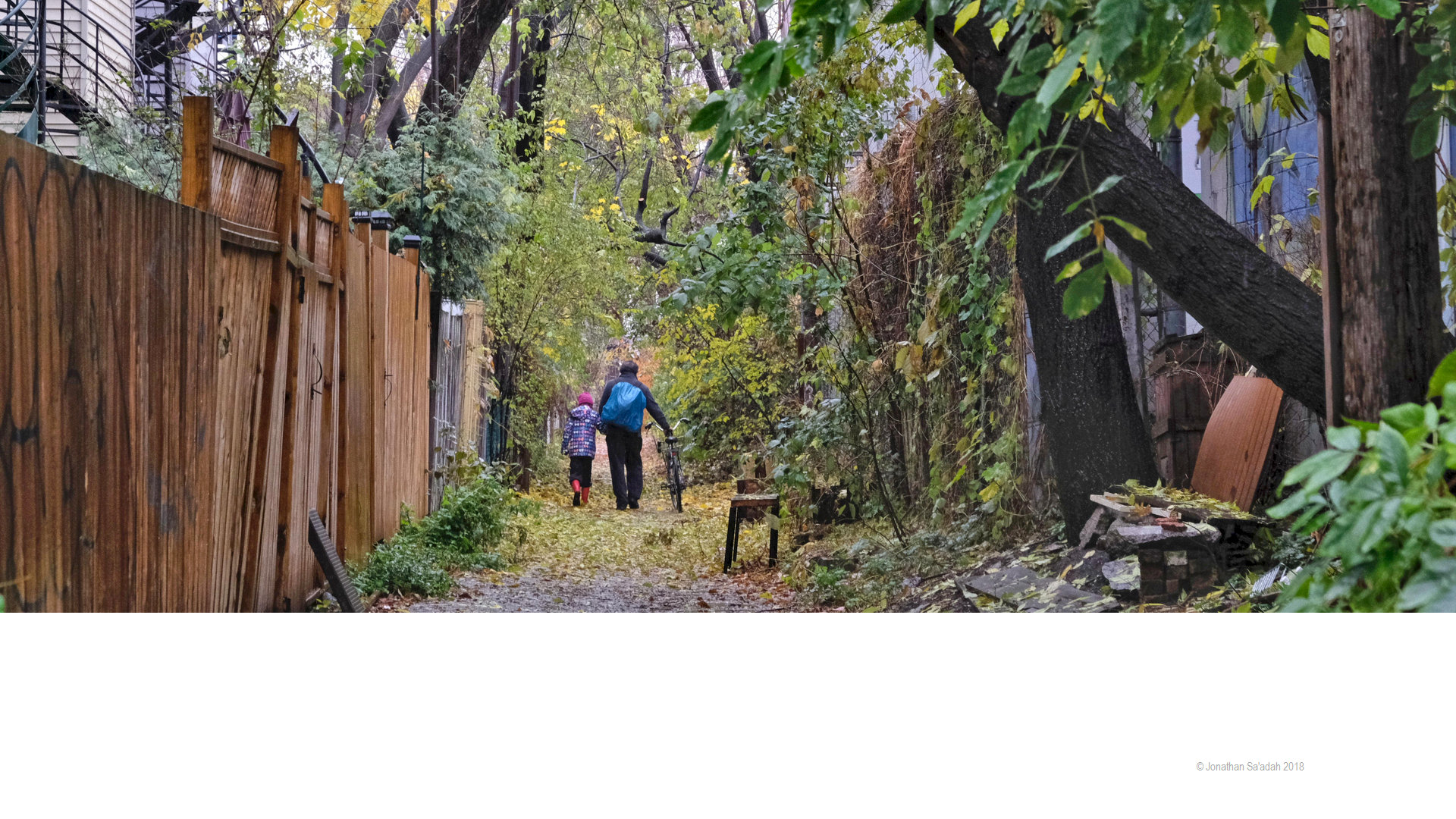 My city, for sure! The photo of the parent and child walking in the lane is quintessentially Montreal.