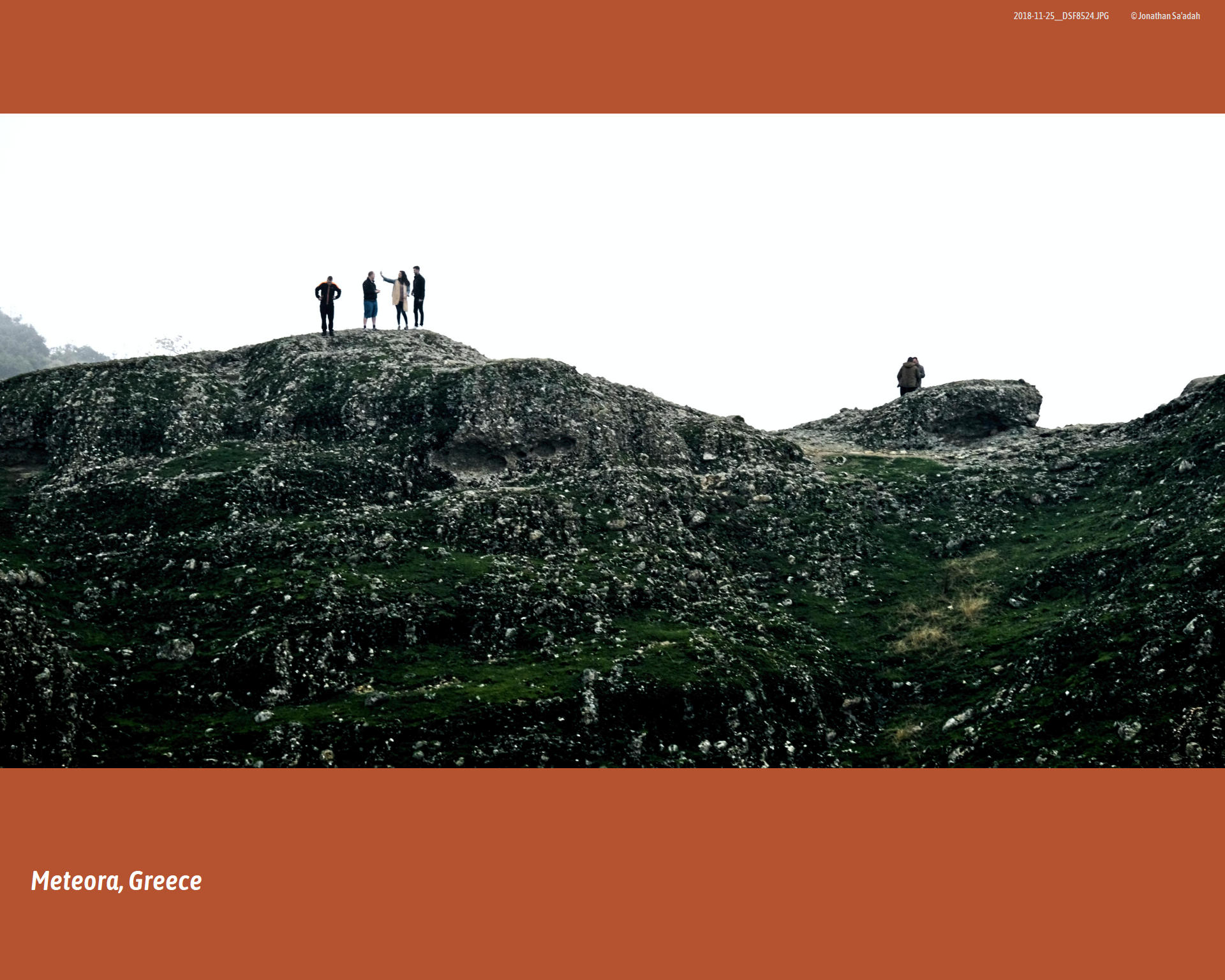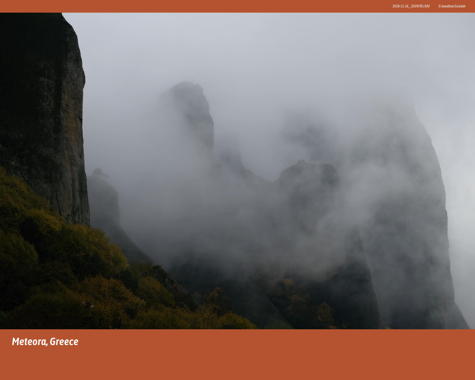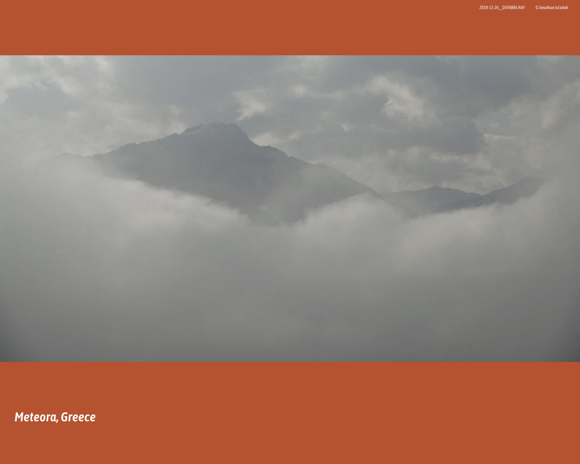 We had come to see Meteora on a misty morning in November, 2018. The ground-hugging fog drifted like a low cloud across the Thessalian plain, swallowing the road ahead and the hulking silhouettes of rock that we knew were there but could not yet see. Somewhere above, the monasteries of Meteora – “suspended in the air,” as their name has been translated for centuries – waited in the whiteout, as they have since the first hermits began climbing into caves up there in the 11th century.